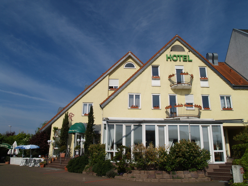 Conveniently situated in the green belt of the Rhine-Main area you will find the hotel Bausch Hof. Built in country-style house is situated in quiet location (no noise) of the Opeltown Rüsselsheim, with uninterrupted views across meadows and fields. The cities of Frankfurt, Mainz, Wiesbaden and Darmstadt can be reached by car in a few minutes, taking the Autobahn A60,. Distances: The motorway 1 km, station 5 km, Airport 18 km, Messe Frankfurt 28 km, fair Mainz 9 km away.